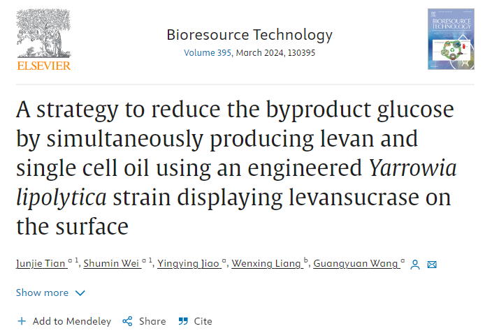近日,必威西汉姆联王光远副教授课题组在生物工程领域TOP期刊Bioresource Technology(影响因子11.4,中科院1区)发表了题为“A strategy to reduce the byproduct glucose by simultaneously producing levan and single cell oil using an engineered Yarrowia lipolytica strain displaying levansucrase on the surface”的研究论文。