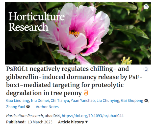 近日,必威西汉姆联盖树鹏团队在农林科学领域一区、Top期刊《Horticulture Research》上发表了题为“PsRGL1 negatively regulates chilling- and gibberellin-induced dormancy release by PsF-box1-mediated targeting for proteolytic degradation in tree peony”的研究成果。该研究从GA信号调控的角度,解析了GA信号的负调控因子参与牡丹芽休眠解除的分子机制。