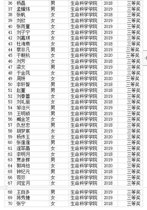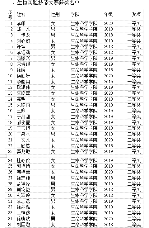 一、生物学大赛获奖名单