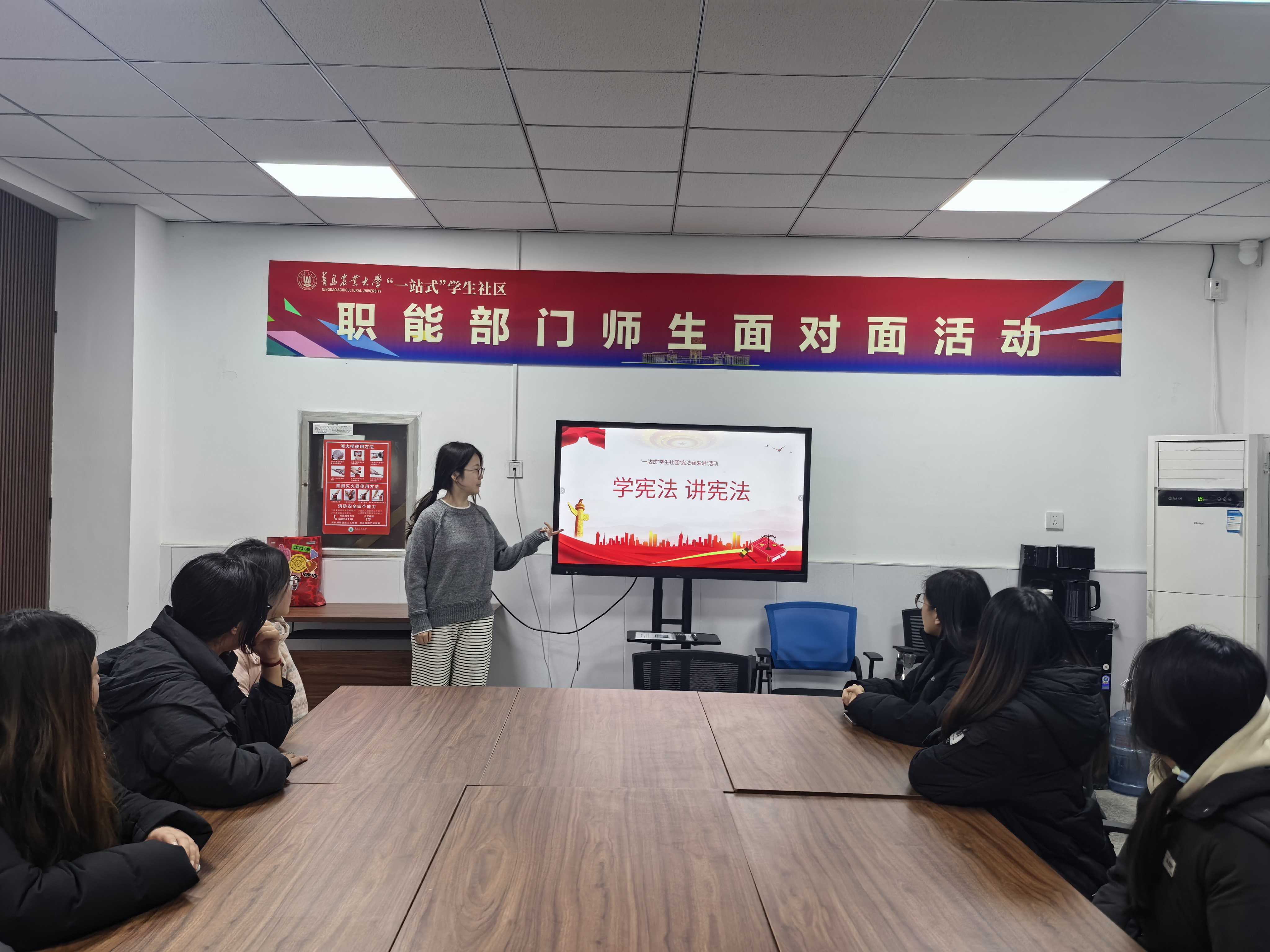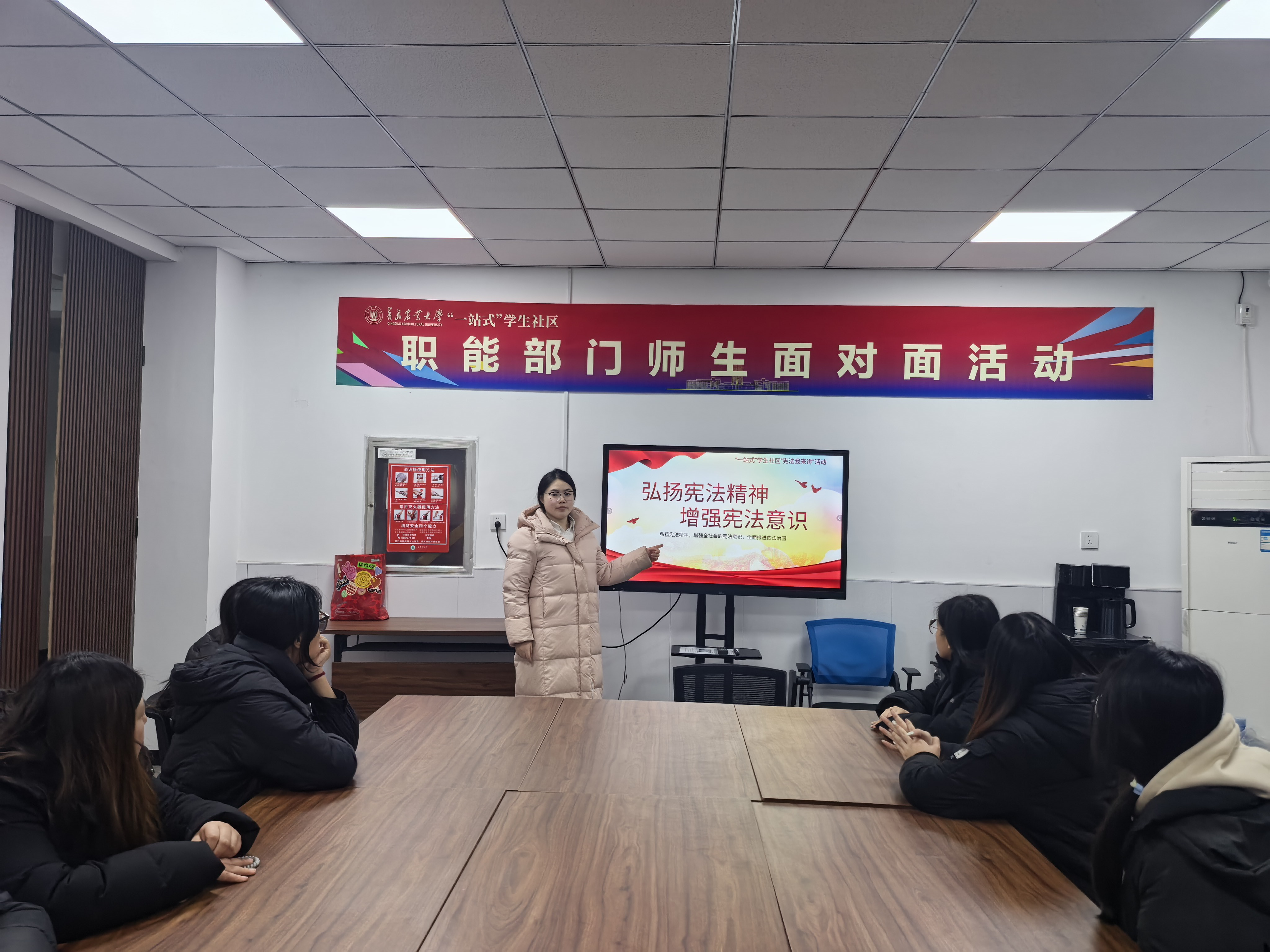 为深入学习宣传宪法精神,筑牢青年学子法治信仰根基,推动法治教育融入校园日常生活,12月10日,必威西汉姆联依托“一站式”员工社区育人阵地,精心举办“宪法我来讲”特色普法活动,让宪法知识走出课本、走进宿舍,在社区内营造起“崇宪尚法、知行合一”的浓厚氛围。