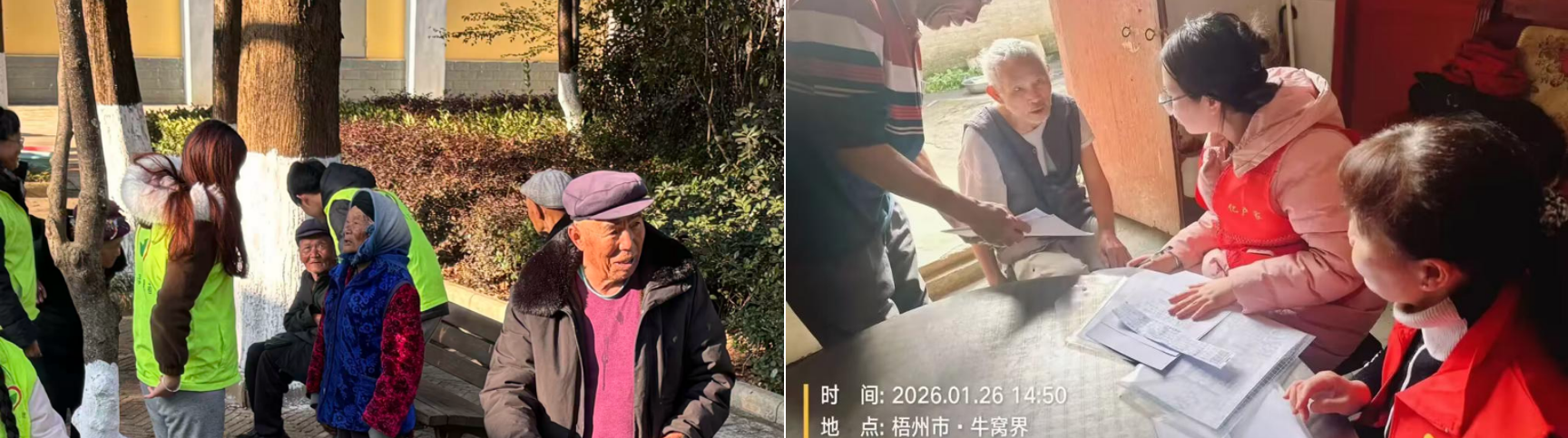 2026年1月26日,“青力暖乡,深居耕耘”实践团在社区养老服务点开展“暖冬敬老,情系桑榆”寒假实践活动。志愿者们与老人握手唠家常、倾听生活趣事,组织手工串柿游戏,现场欢声笑语。活动用陪伴驱散冬日寒意,传递温暖与敬意,践行了“老吾老以及人之老”的传统美德,让志愿精神在服务中闪光。