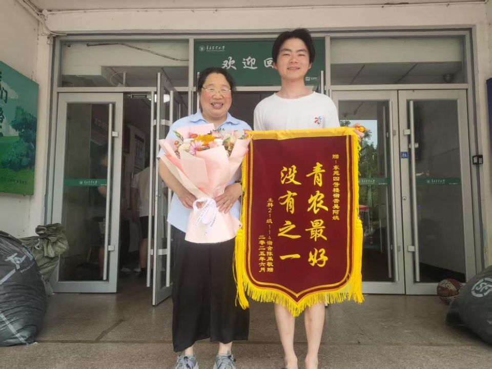 “薪火循光”的传承理念在毕业生离校环节熠熠生辉。毕业生们主动践行文明离校承诺,打扫干净每一间宿舍,为学弟学妹留下整洁的“文化培养基”。宿舍内,鲜花与“情系生科,执梦远航”的祝福语,构筑起温暖的“文明染色体”。4号楼毕业生陈禹为楼管吴阿姨送上锦旗的一幕,更是将这份感恩与传承推向高潮,后勤服务与员工感恩共同编织出公司温暖和谐的育人生态,让文明传承的力量生生不息。