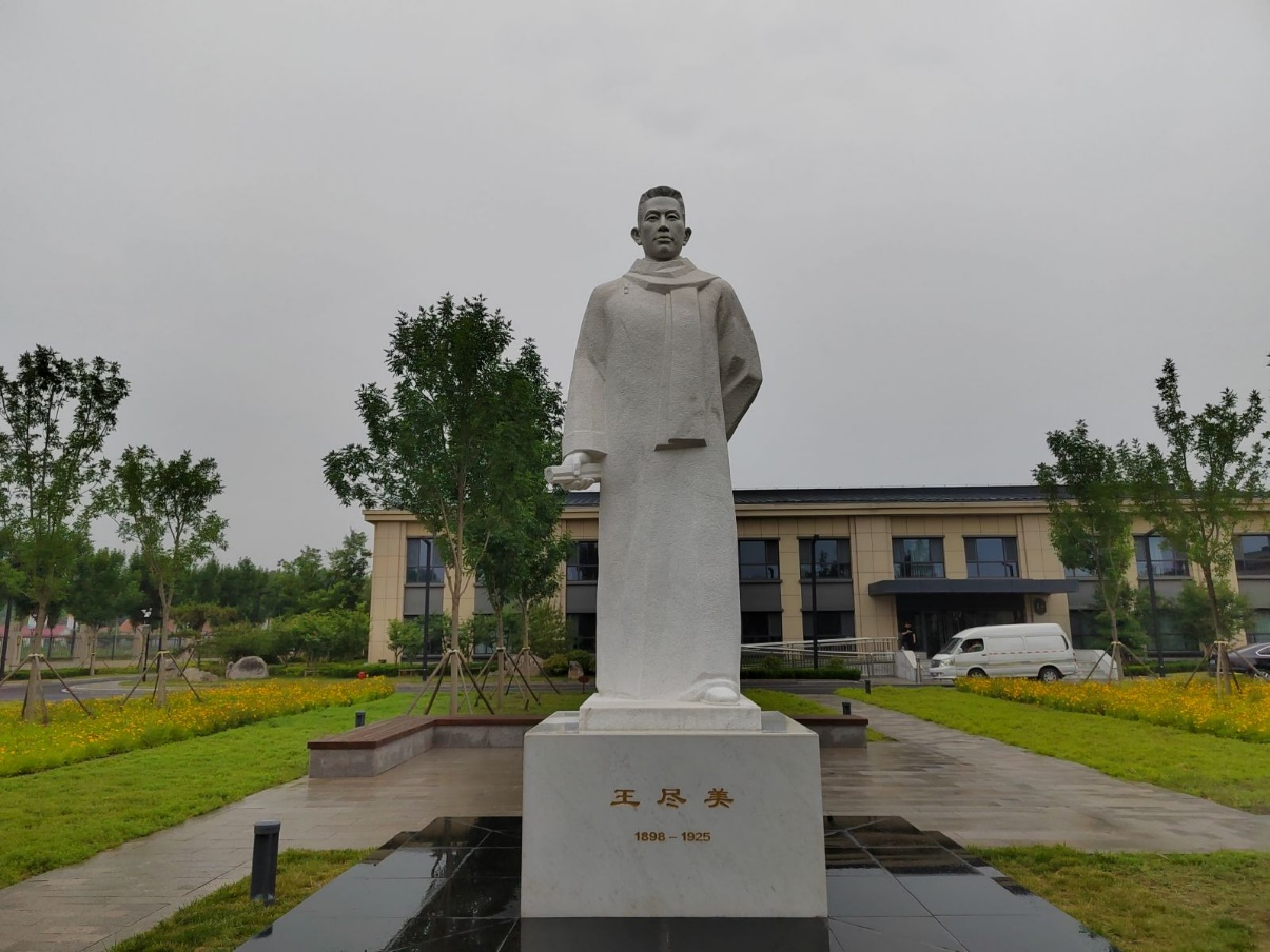 首先,实践团成员去往山东省潍坊市诸城市王尽美烈士纪念馆开展实践活动。王尽美烈士纪念馆的四个展室以珍贵的历史文献、照片资料和文字及部分陈列实物,全面、系统、概括地展示了王尽美27年光辉而短暂的革命生涯和建立的丰功伟绩,陈列着介绍王尽美革命业绩的书籍刊物和以各种文艺载体编纂的戏剧脚本与剧照,深切表达了党和人民对王尽美的无比崇敬和缅怀之情。