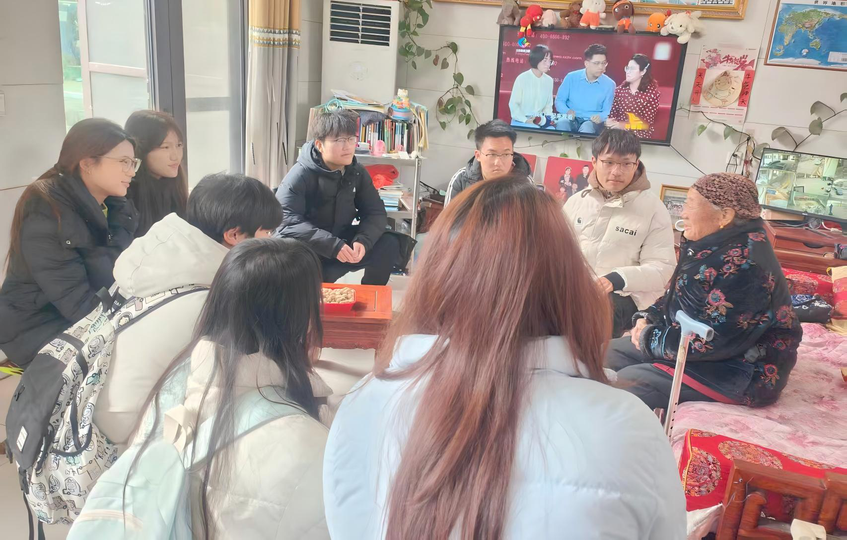 怀着崇高敬意,实践团成员走进革命烈属家中,与老人促膝长谈。老人深情讲述父辈英勇斗争的往事,满是对党的忠诚与新时代的期盼,同学们细致询问老人的生活状况,传递温暖与关怀,并围绕革命历史、乡村振兴、青年责任等话题踊跃请教。老人们勉励大家要铭记历史、珍惜当下,坚定不移跟党走,学好专业知识,用实际行动传承红色基因。