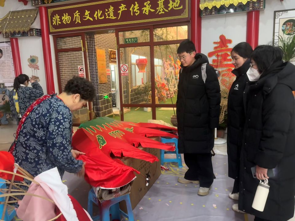 2026年2月7日至8日“守艺鸢都 问道淄乡”赴山东潍坊淄博实践服务团走进潍坊、淄博两地,开展非遗文化实践活动。团队先后到访潍坊世界风筝博物馆、潍坊非物质文化遗产馆、杨家埠非遗传承基地及淄博陶瓷琉璃博物馆等阵地,在非遗传承人的指导下,系统学习风筝、花灯、木版年画、拓印、琉璃等非遗技艺的发展历史,沉浸式体验扎制、雕刻、塑形等核心制作工序,切身感受传统技艺中的匠心与智慧。此次实践让团队成员深悟齐鲁非遗的文化底蕴与传承价值,积累了丰富的非遗实践经验。服务团全体成员郑重宣言,将以青春之力担当非遗传承使命,争做非遗文化的守护者、传播者与创新者,让传统技艺在新时代焕发出更鲜活的生命力。