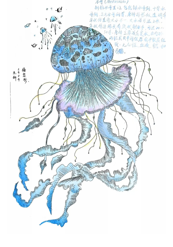 比赛过程中,同学们以笔为舟,在生命科学与艺术的海洋中遨游,他们结合课堂所学,充分发挥想象力与创造力,将复杂的生物知识转化为生动的艺术画面。部分参赛作品聚焦植物世界,用细腻的笔触勾勒出植物的形态结构,作品中植物从破土而出的嫩芽,到舒展的叶片脉络,再到娇艳绽放的花朵,每一处细节都精准还原了植物生长的奇妙过程;部分作品将视角投向广袤的生态系统,用绚丽的色彩描绘出森林中动植物和谐共生的美妙场景,仿佛能让人听见林间鸟儿的欢唱。