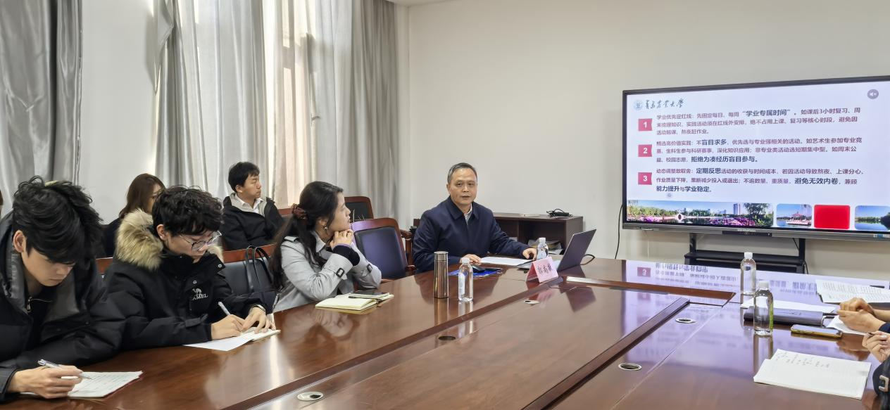 针对新生普遍存在的“未来规划迷茫”问题,郭尚敬结合自身经验与公司人才培养理念提出建议。他表示,大学初期是个人兴趣与方向的重要探索期,可以通过尝试不同类型的课程、参与感兴趣的社团活动,在实践中逐步明确发展方向。在“学习方法转变”这一核心诉求上,郭尚敬“自主规划”“高效利用资源”“定期复盘调整”三个方面为新生提供了指导。此外,校领导还逐一解答了学科前沿探索、考研准备、推免政策、转专业、国际交流、就业竞争力提升等热门问题,为新生推荐“番茄工作法”,让新生收获了实用的成长经验。