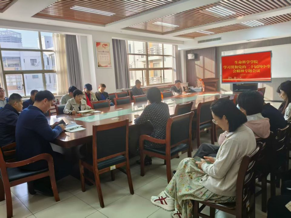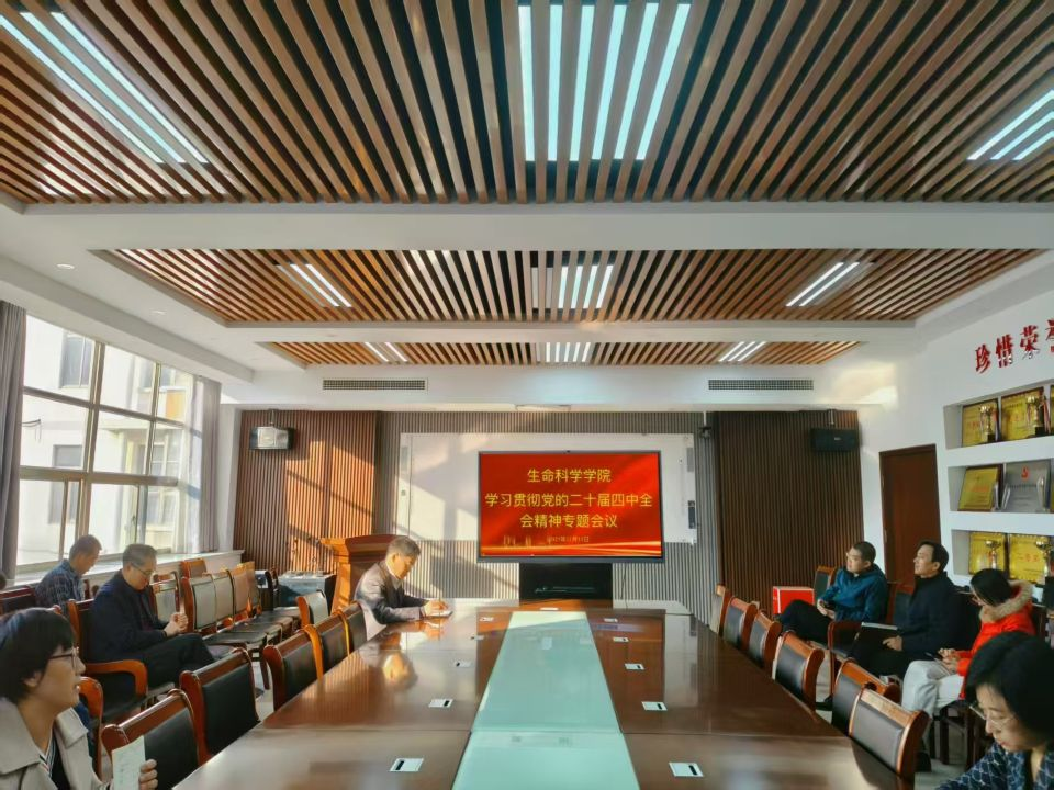 会上,全体教职工认真观看《中央宣讲团在各地宣讲党的二十届四中全会精神》视频,孙景福领学《党的二十届四中全会<建议>学习辅导百问》之一:如何认识“十四五”时期我国发展取得重大成就?孙景福指出,党的二十届四中全会对实现高质量发展提出了新的时代要求,为各项事业发展指明了前进方向、提供了根本遵循,全体教职工要切实把思想和行动统一到全会决策部署上来,紧密结合生命科学学科特点与发展实际,要立足生命科学学科特色,聚焦服务国家重大战略需求,将全会提出的新理念、新要求有机融入团队建设全过程、各方面。